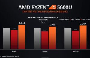 The Ryzen 7 5800U (8C/16T), Ryzen 5 5600U (6C/12T), and Ryzen 3 5400U (4C/8T) are part on the Cezanne platform and get Zen3-based processors with 4-8 Cores, HyperThreading, an upgraded memory controller and increased amount of L2+L3 cache memory, faster integrated Radeon Vega graphics, and a multitude of other IPC improvements and optimizations.
