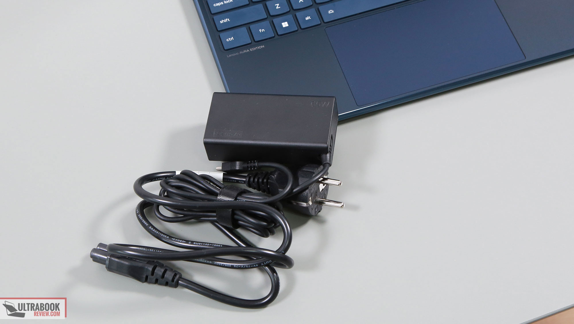 The laptop ships with a 65W USB-C charger. It’s a compact brick, but with two long cables that add to the bulk and weight. I would have expected a more compact format on this sort of premium notebook, ideally something with a detachable cord.