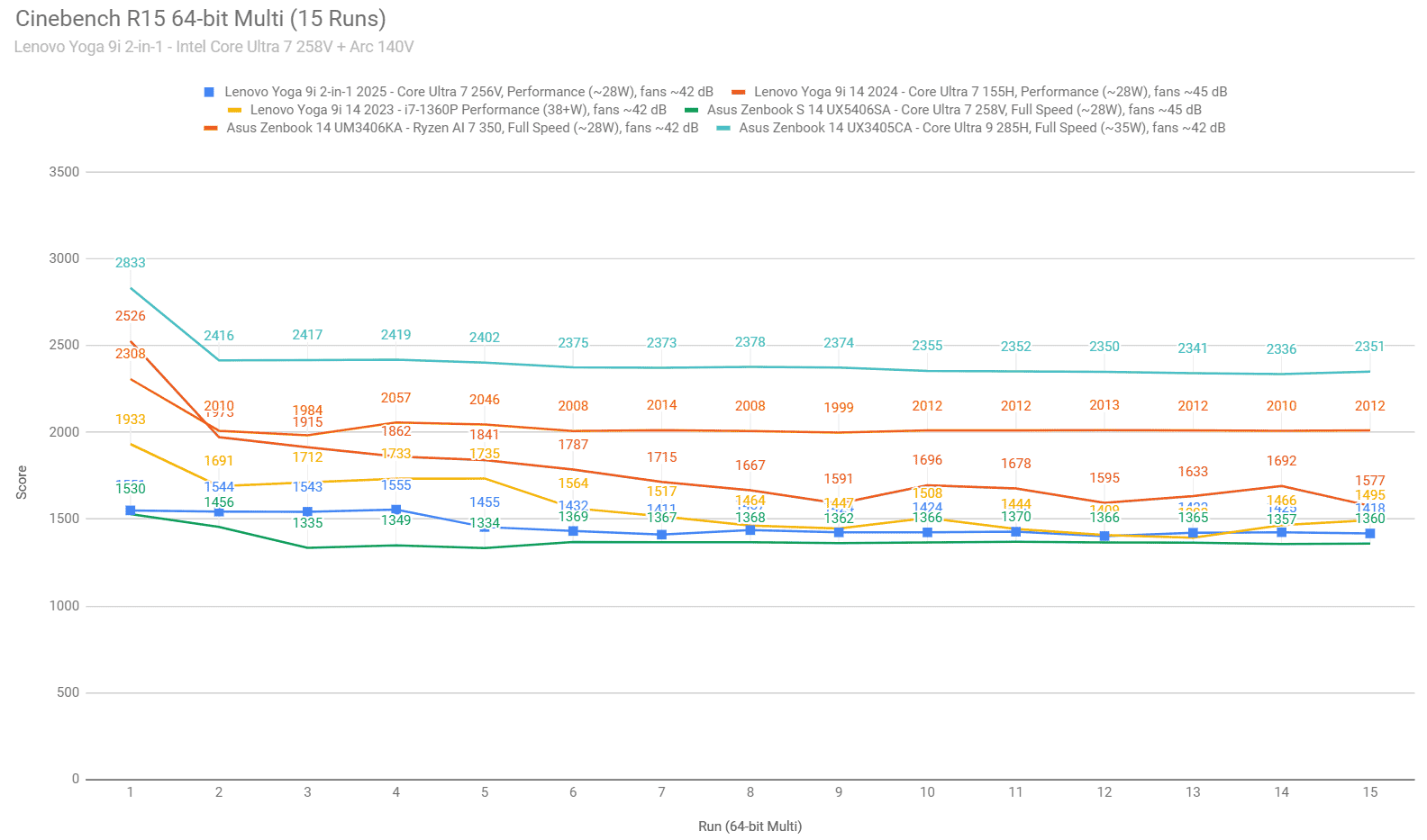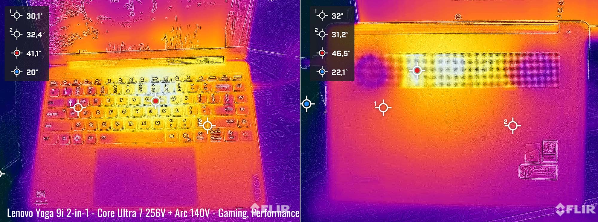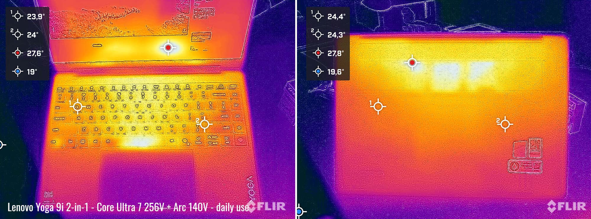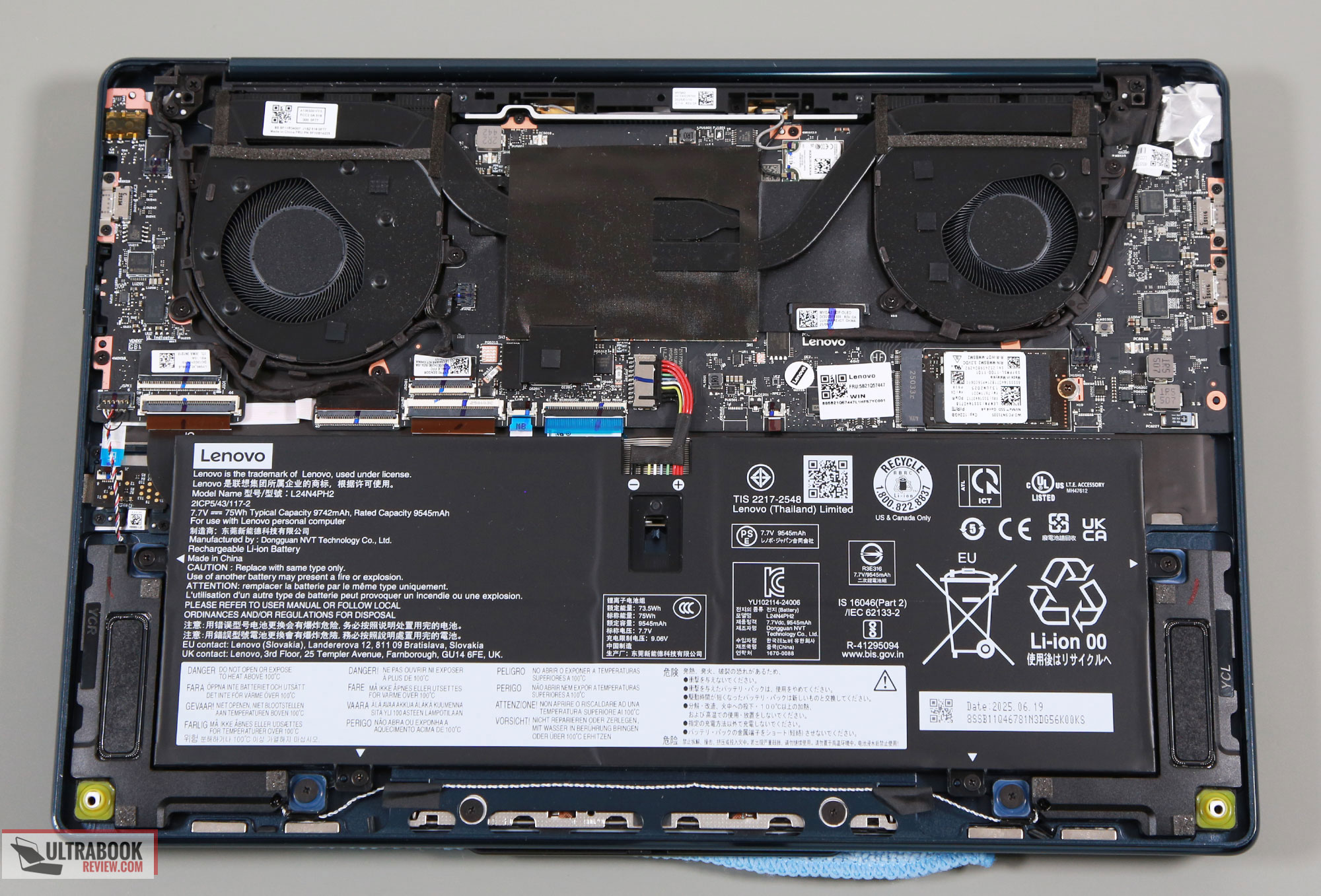 The cooling module on this Lenovo Yoga 9i gen10 is inherited from the previous iteration that ran the hardware at higher power, so it’s somewhat oversized for a Lunar Lake platform. That explains the excellent internal temperatures discussed earlier.