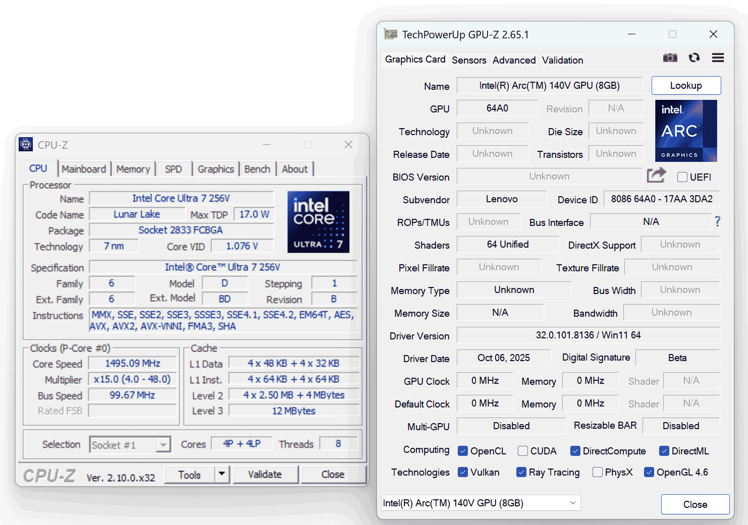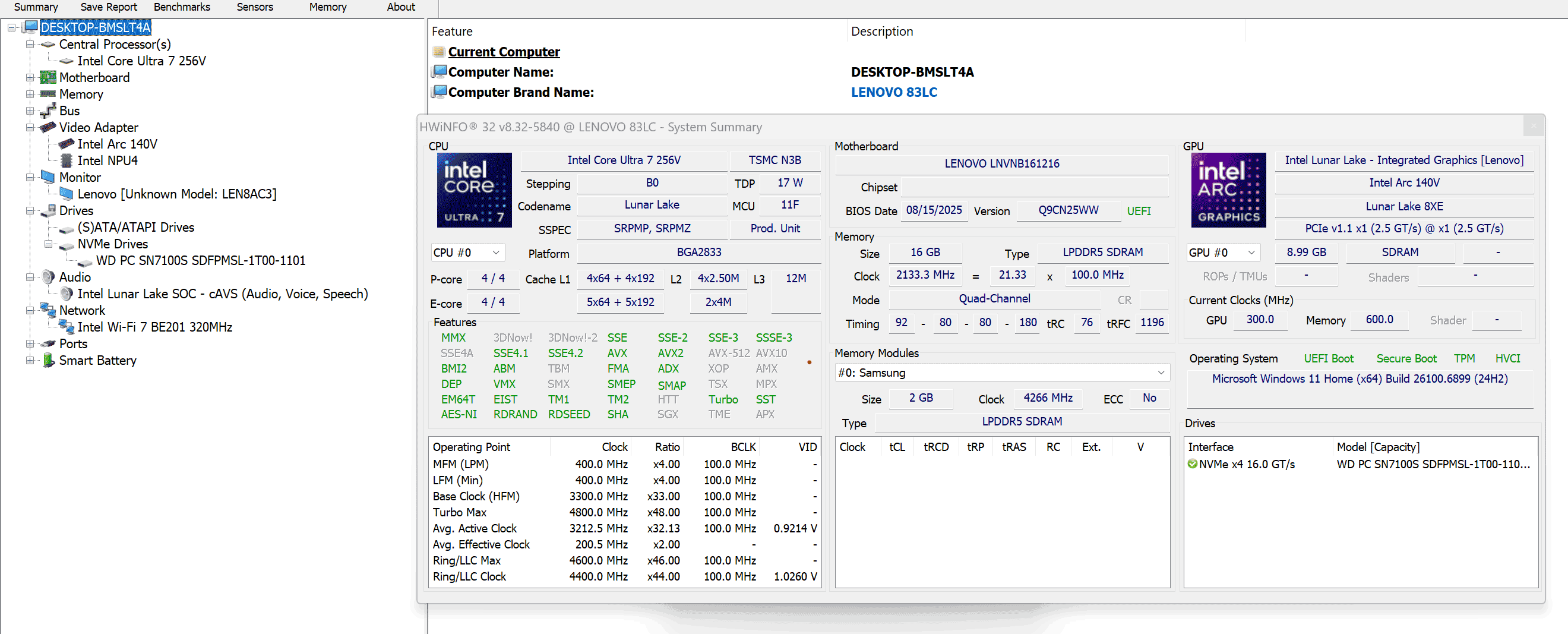 Disclaimer: This is a retail unit offered by Lenovo for review. It is tested with the software available as of late-October 2025 (BIOS Q9CN25WW, Vantage 4.3.96.0 app, Intel V32.0.101.8136 driver), a mature package at this point.