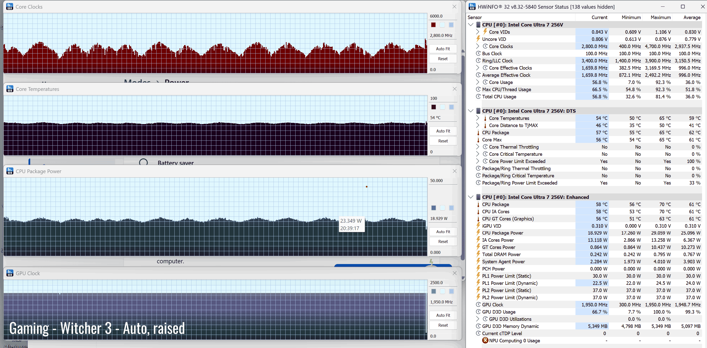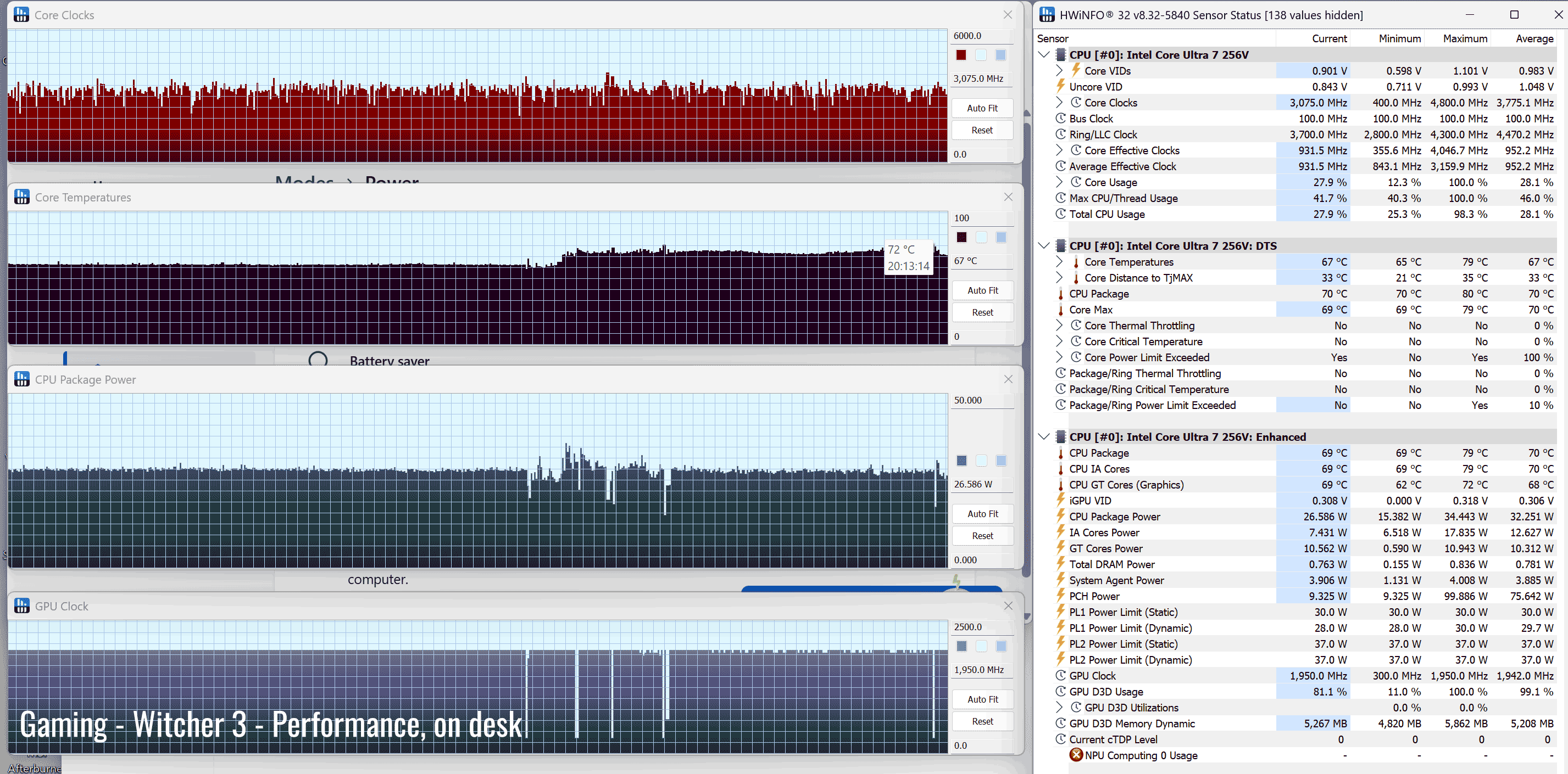 *Gaming – Performance mode – playing Witcher for 30 minutes, fans at ~38 dB
