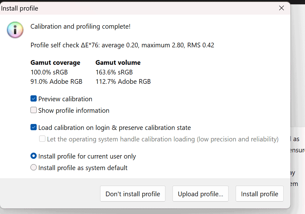 Anyway, here’s what we got in our tests, with an X-Rite i1 Display Pro sensor :