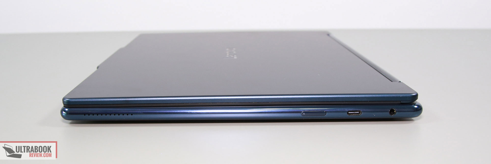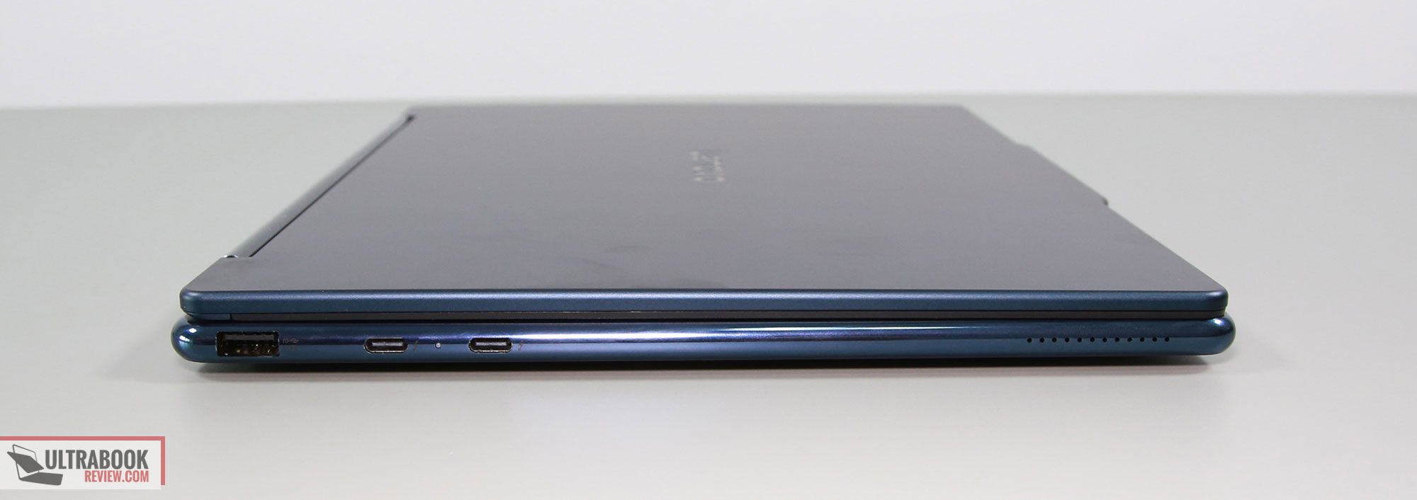 Another slight compromise is the minimalist IO, which mostly relies on USB-C ports, with an extra audio jack and USB-A slot. At least it’s not USB-C exclusive. What’s nice is that you get USB-C ports on both edges, so you can conveniently plug this in or connect your peripherals on either side, something still very few laptops offer these days.