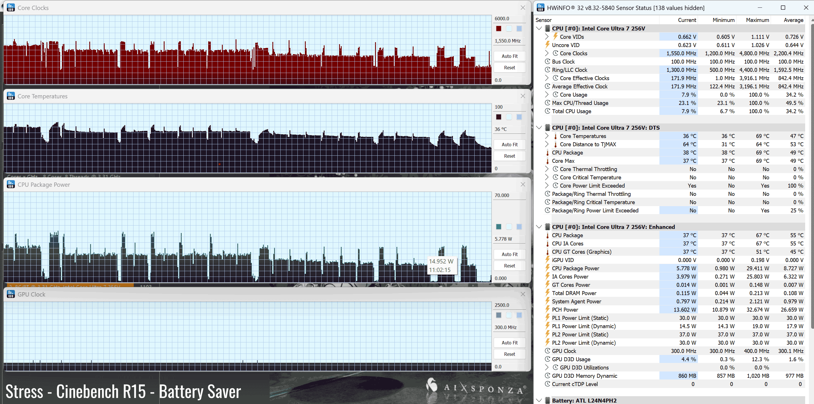 Battery Saver – limits the CPU at ~15W to favor fan noise of sub 30 dB.