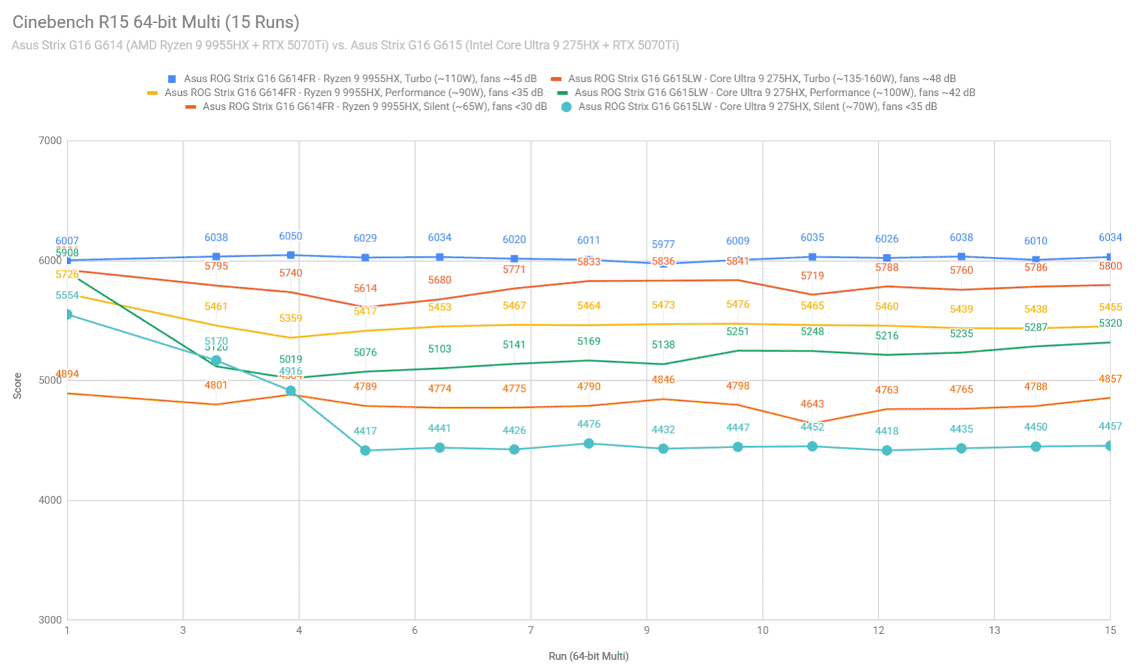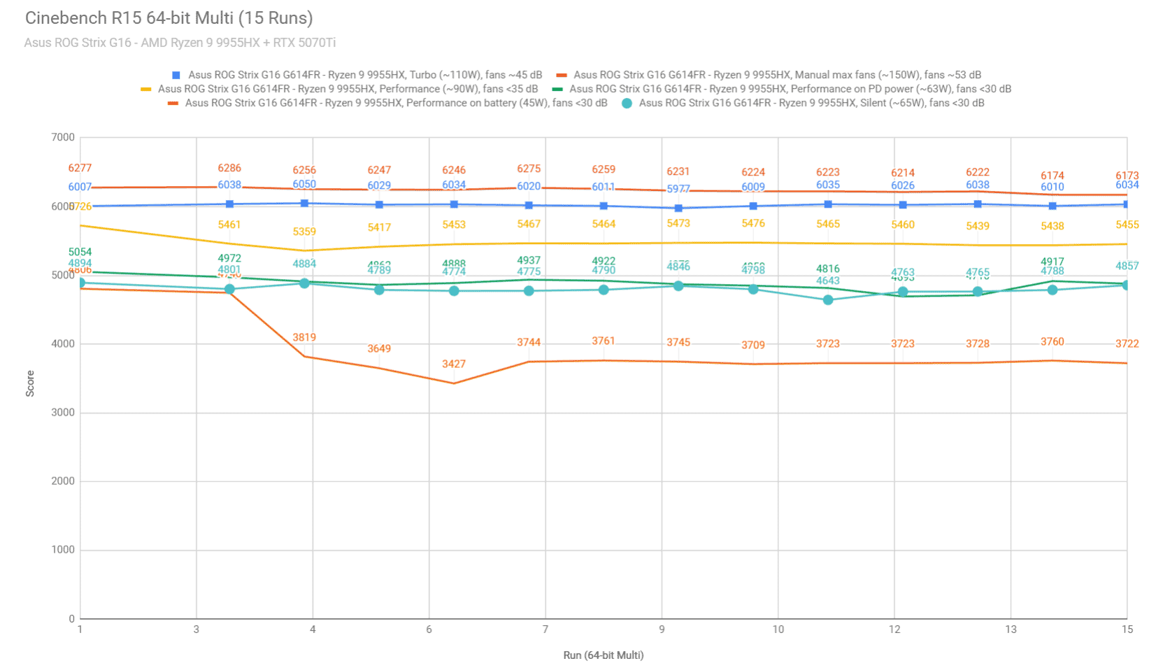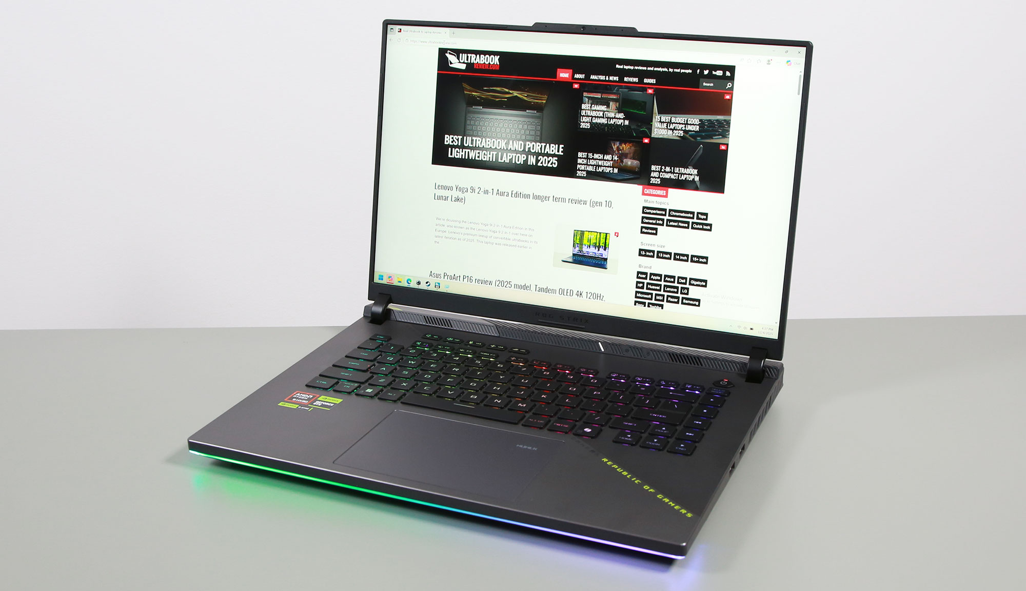 The configuration tested here, the Asus Strix G16 G614FR with the Ryzen 9 9955HX and RTX 5070Ti graphics, goes for around $2000 on the US market, 2300-2400 EUR here in Europe, and 2200 GBP in the UK. Occasional sales can drive the price lower, though.