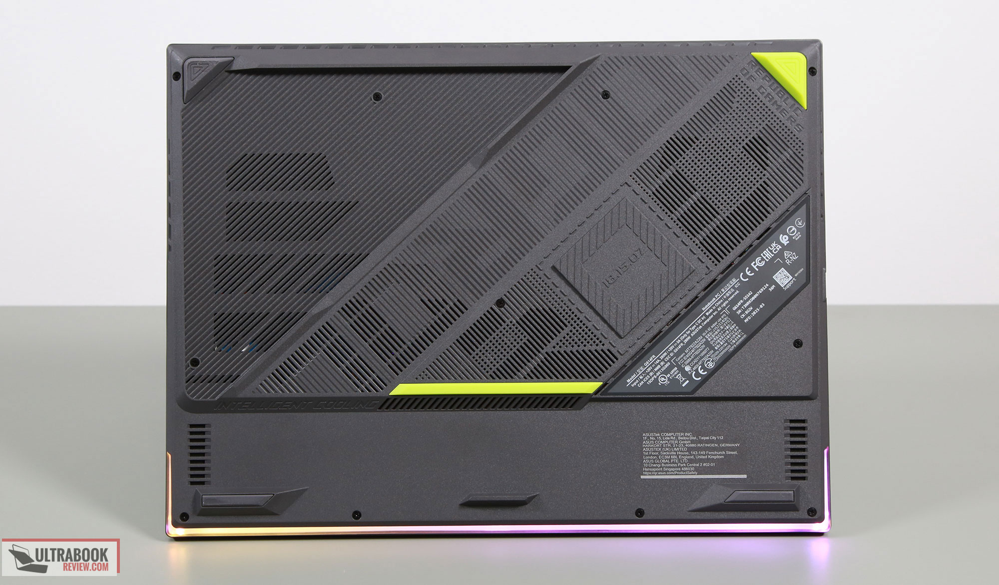 This series is built on the Strix G16 G614 chassis implemented in G16 notebooks for the 2023/2024 generation. For some reason, Asus decided to only refresh the Intel configuration with a new chassis this year (Strix G16 G615), while this AMD configuration remains a G614 implementation.