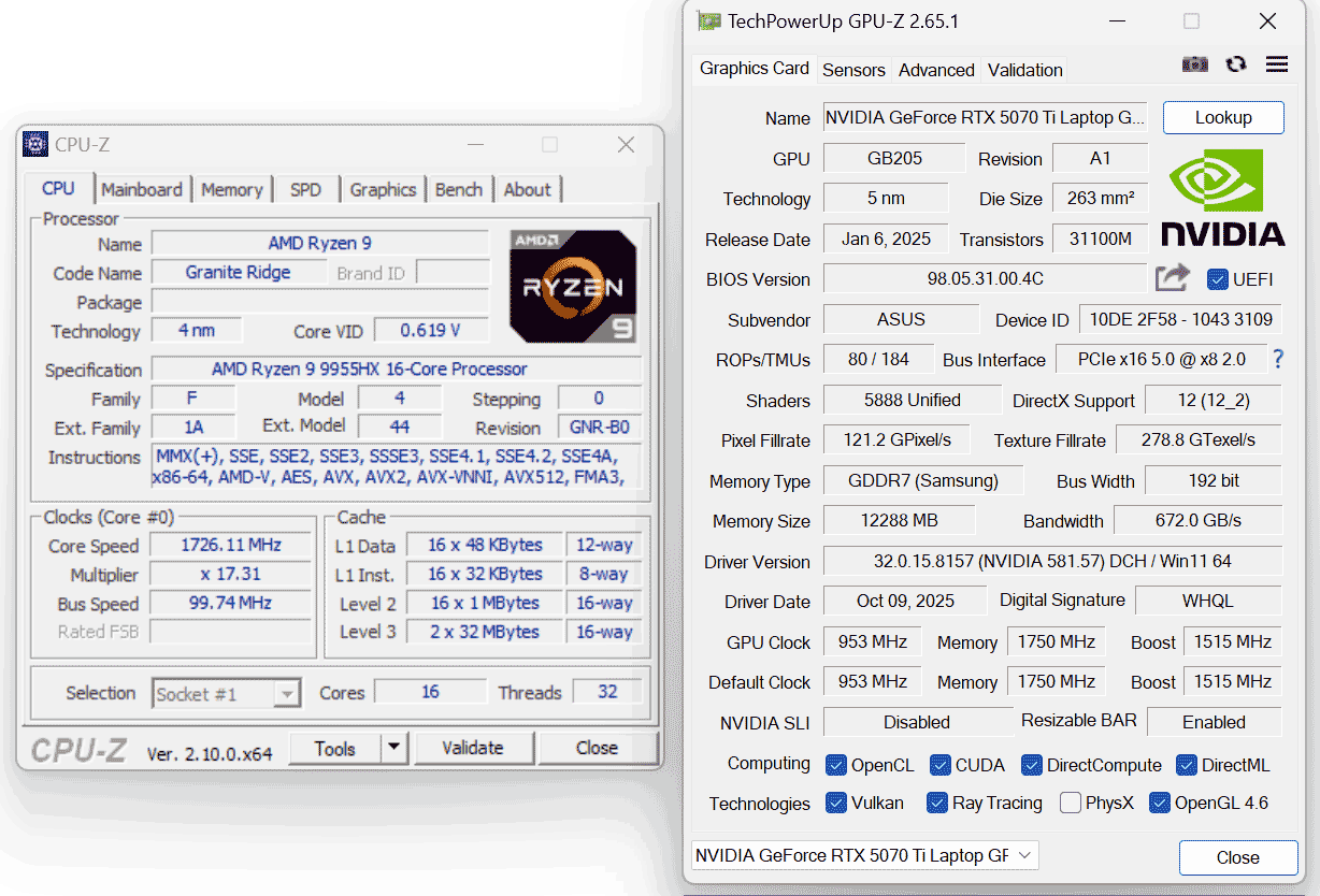 Hardware and performance – Ryzen 9 HX, RTX 5070Ti 140W