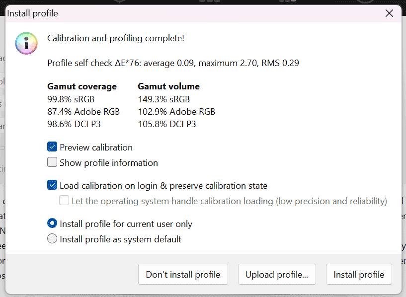 Here’s what we got in our tests of this panel, with an X-Rite i1 Display Pro sensor :