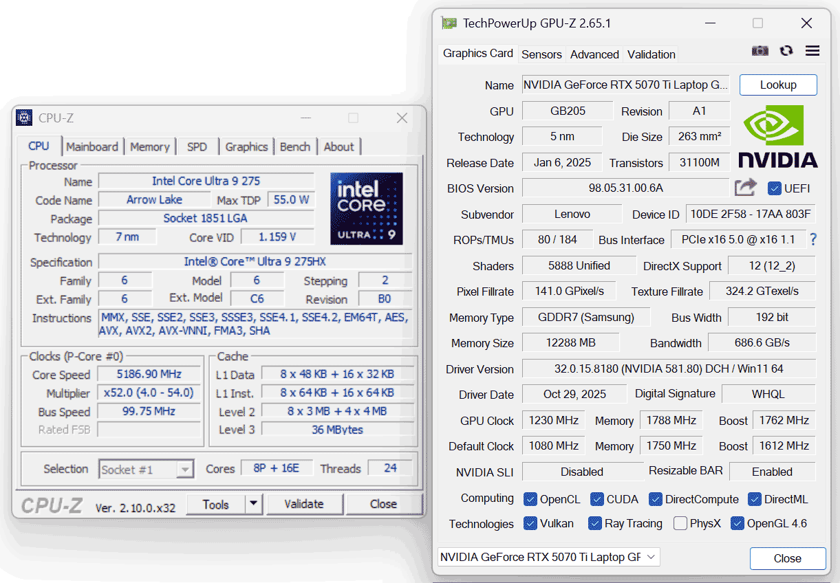 Disclaimer: This is a retail unit provided by Lenovo for this review. It was tested on the software available as of mid-November 2025 (BIOS Q6CN26WW, GeForce Game Ready Driver 581.80). This is mature software, and little to nothing can change with later updates at this point.