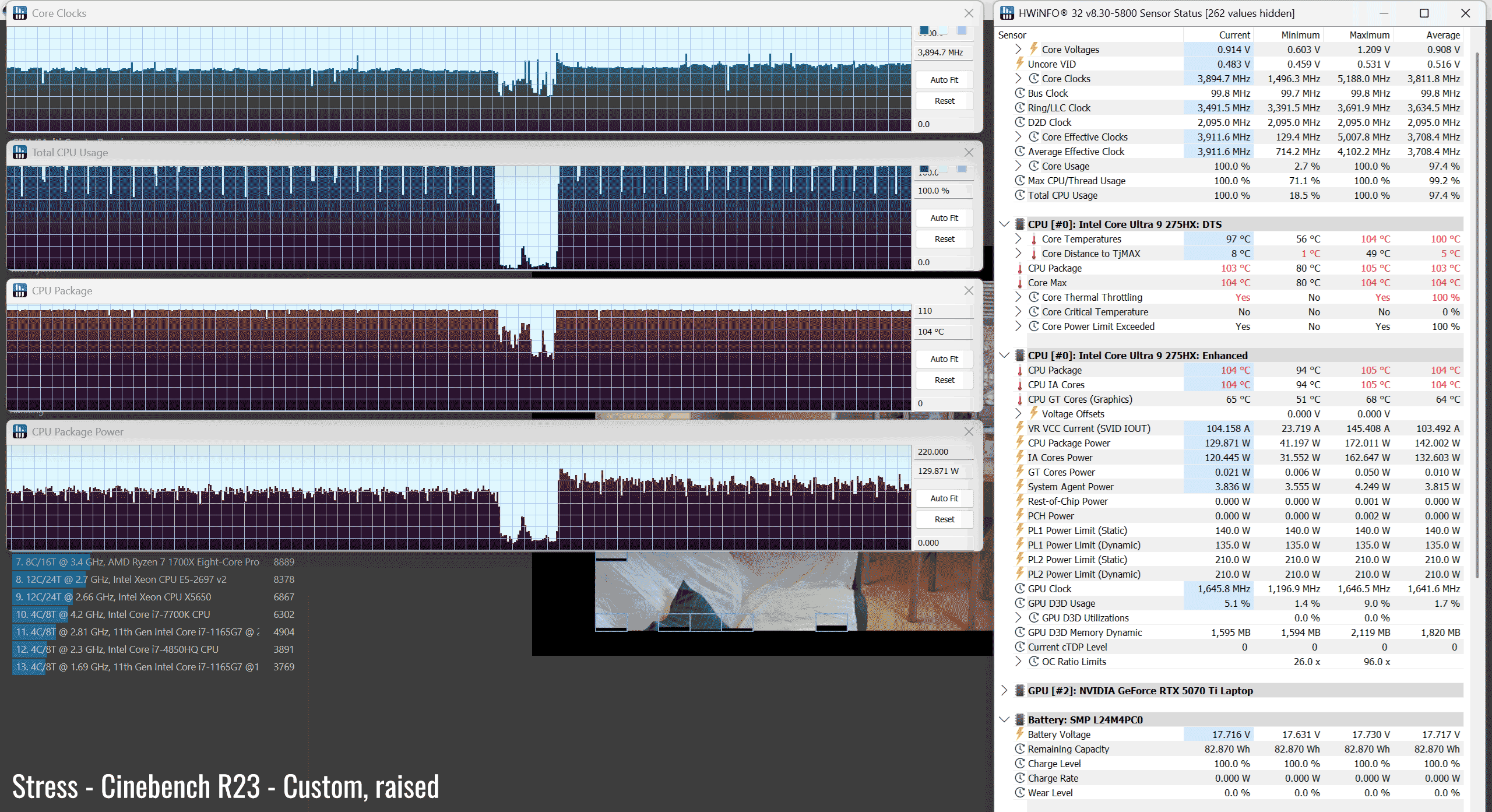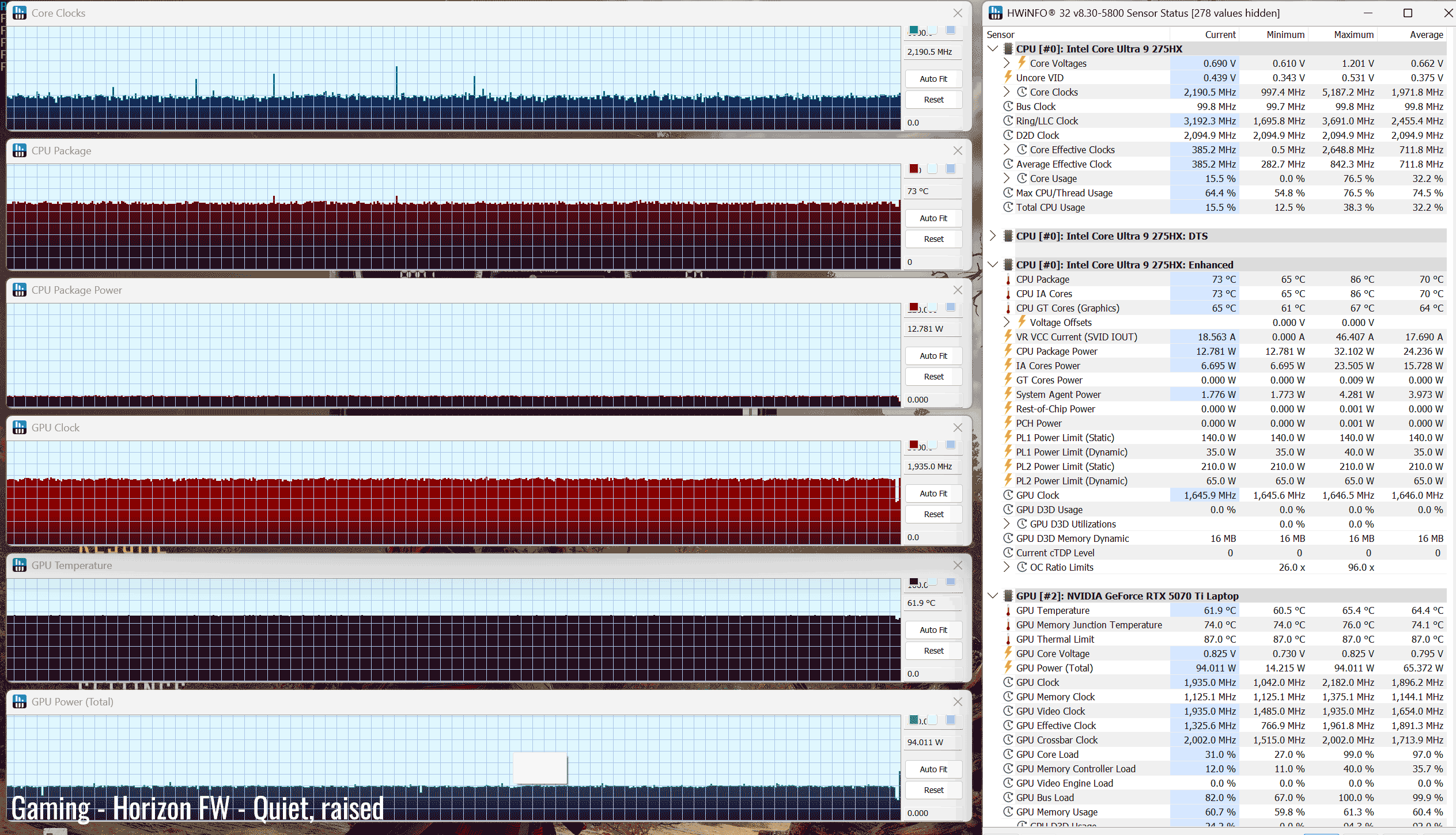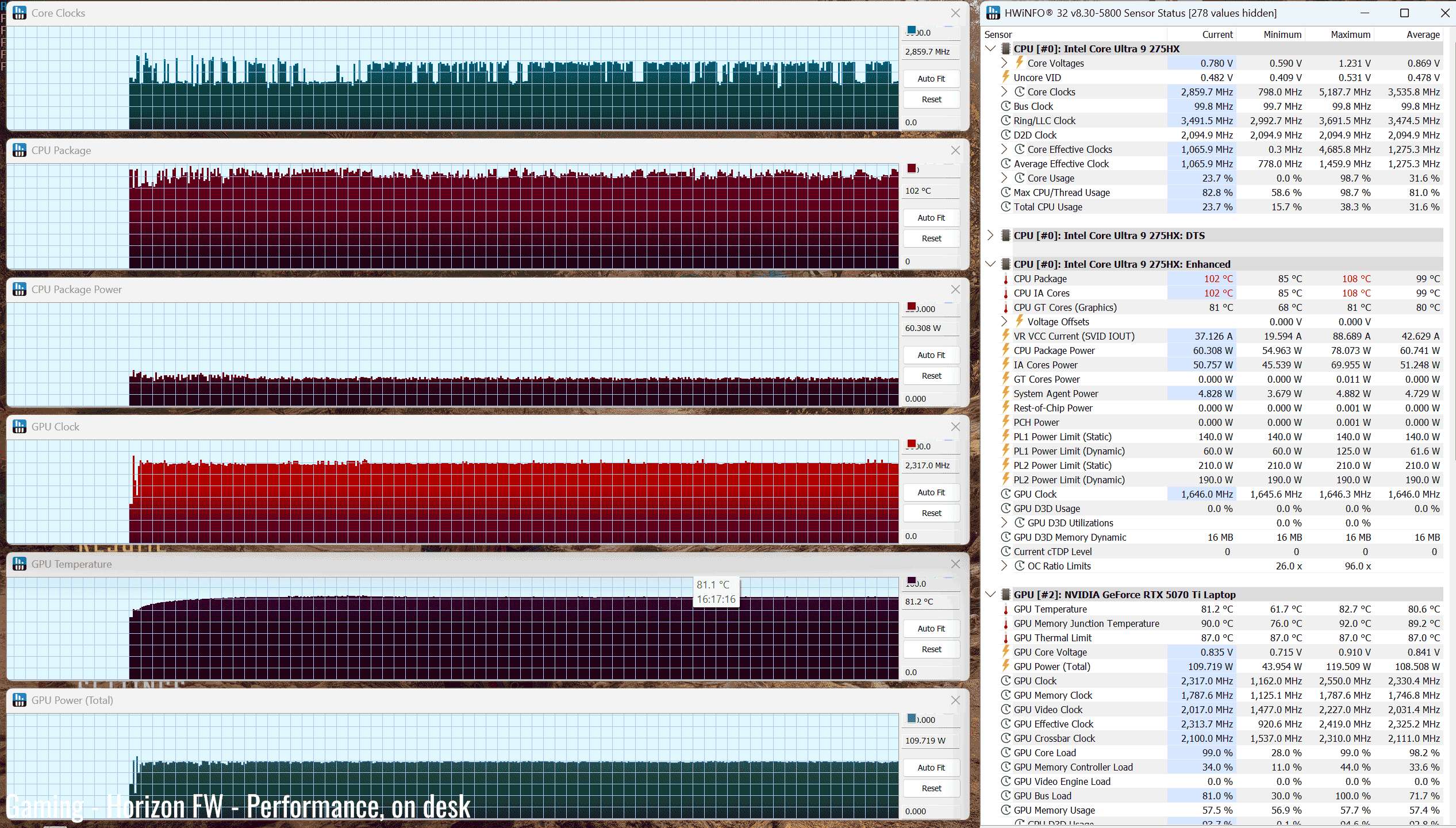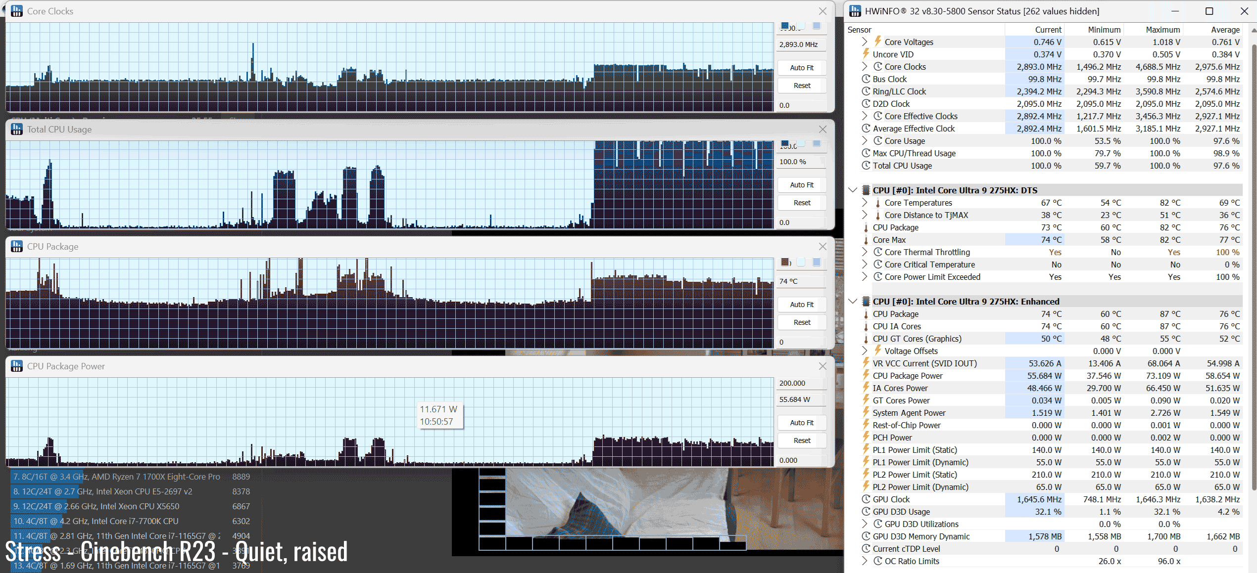 The Core Ultra 9 275HX is a high-performance mobile processor part of the Intel Arrow Lake HX lineup , with 24 Cores and 24 Threads. It’s a hybrid design with Performance and Efficiency Cores, and runs at around 120W of sustained power in demanding CPU loads – that’s not much compared to other full-size implementations of this same platform.