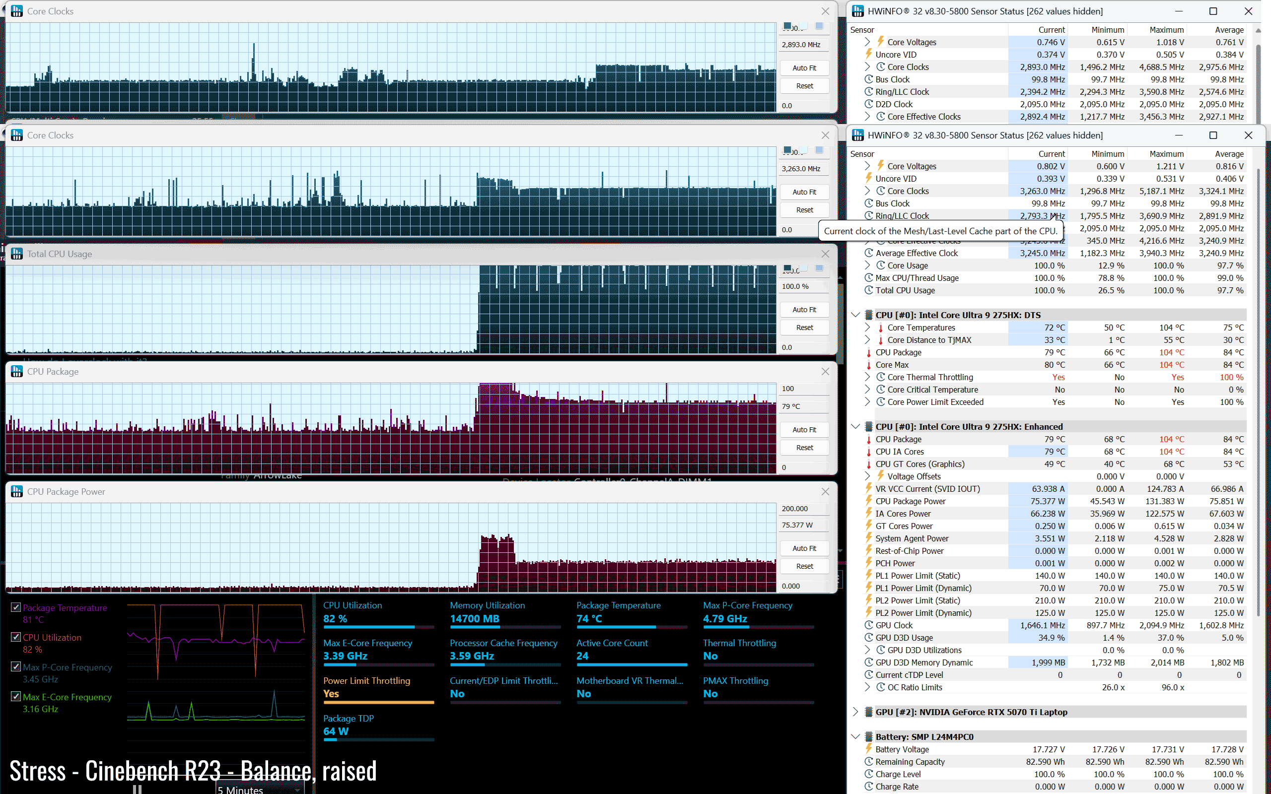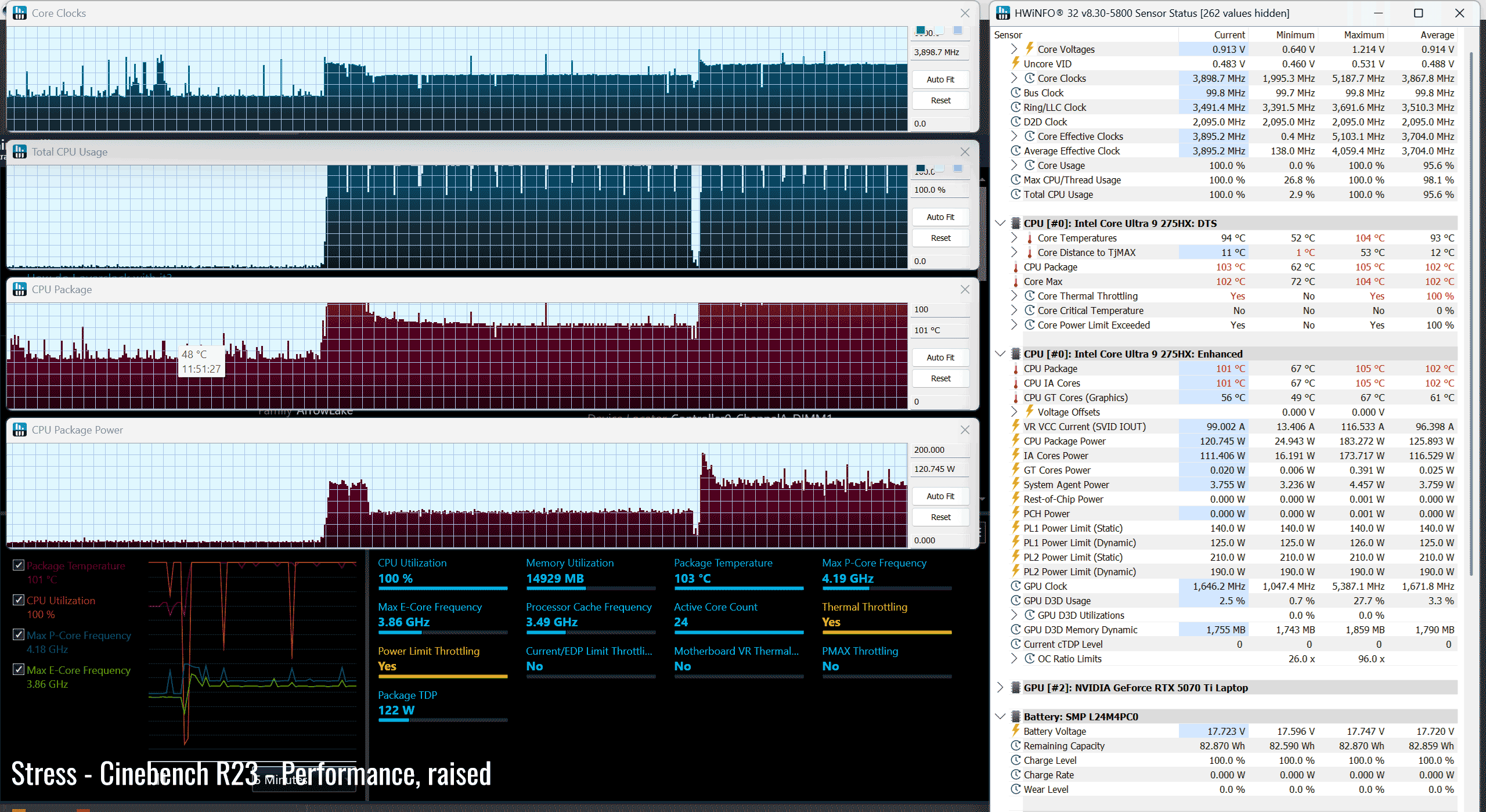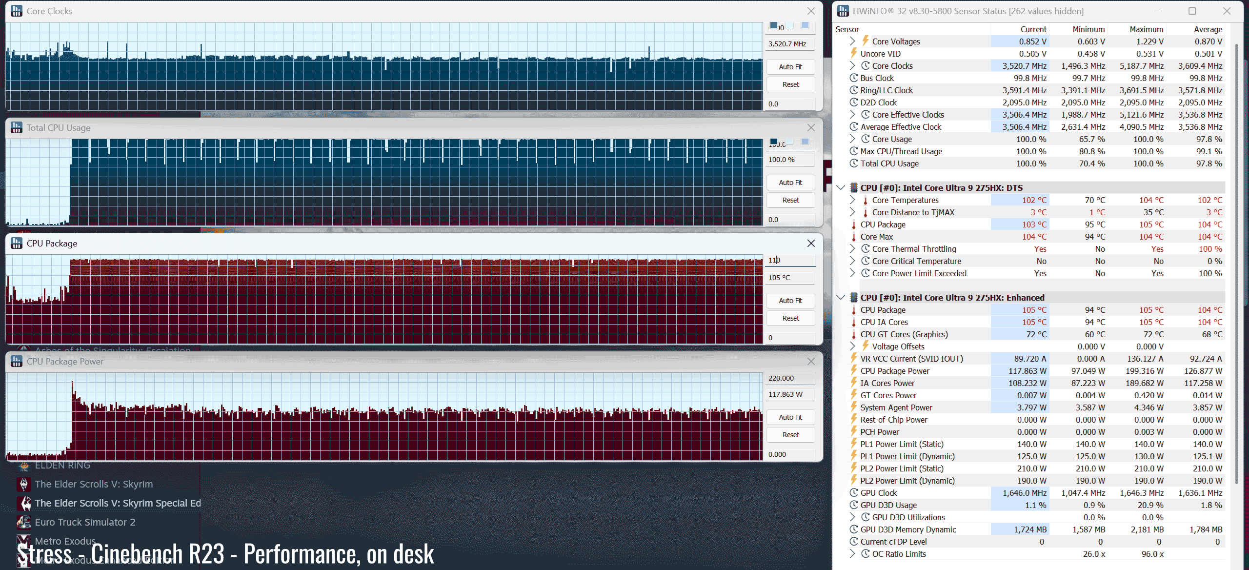 The Core Ultra 9 275HX is a high-performance mobile processor part of the Intel Arrow Lake HX lineup , with 24 Cores and 24 Threads. It’s a hybrid design with Performance and Efficiency Cores, and runs at around 120W of sustained power in demanding CPU loads – that’s not much compared to other full-size implementations of this same platform.