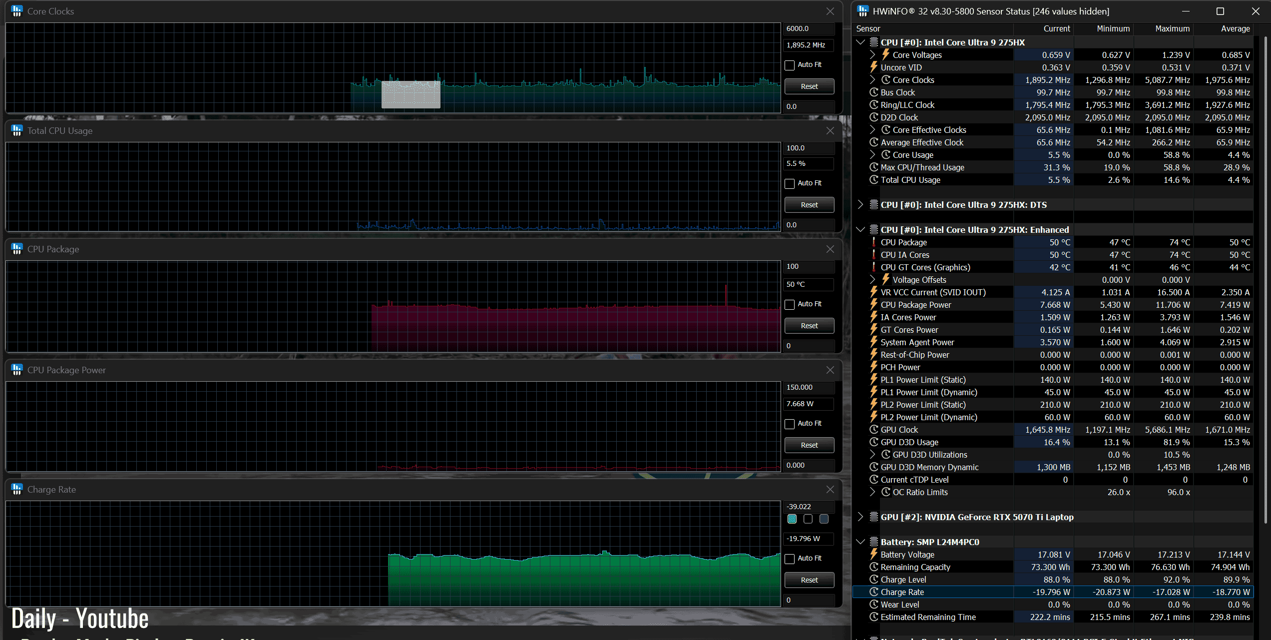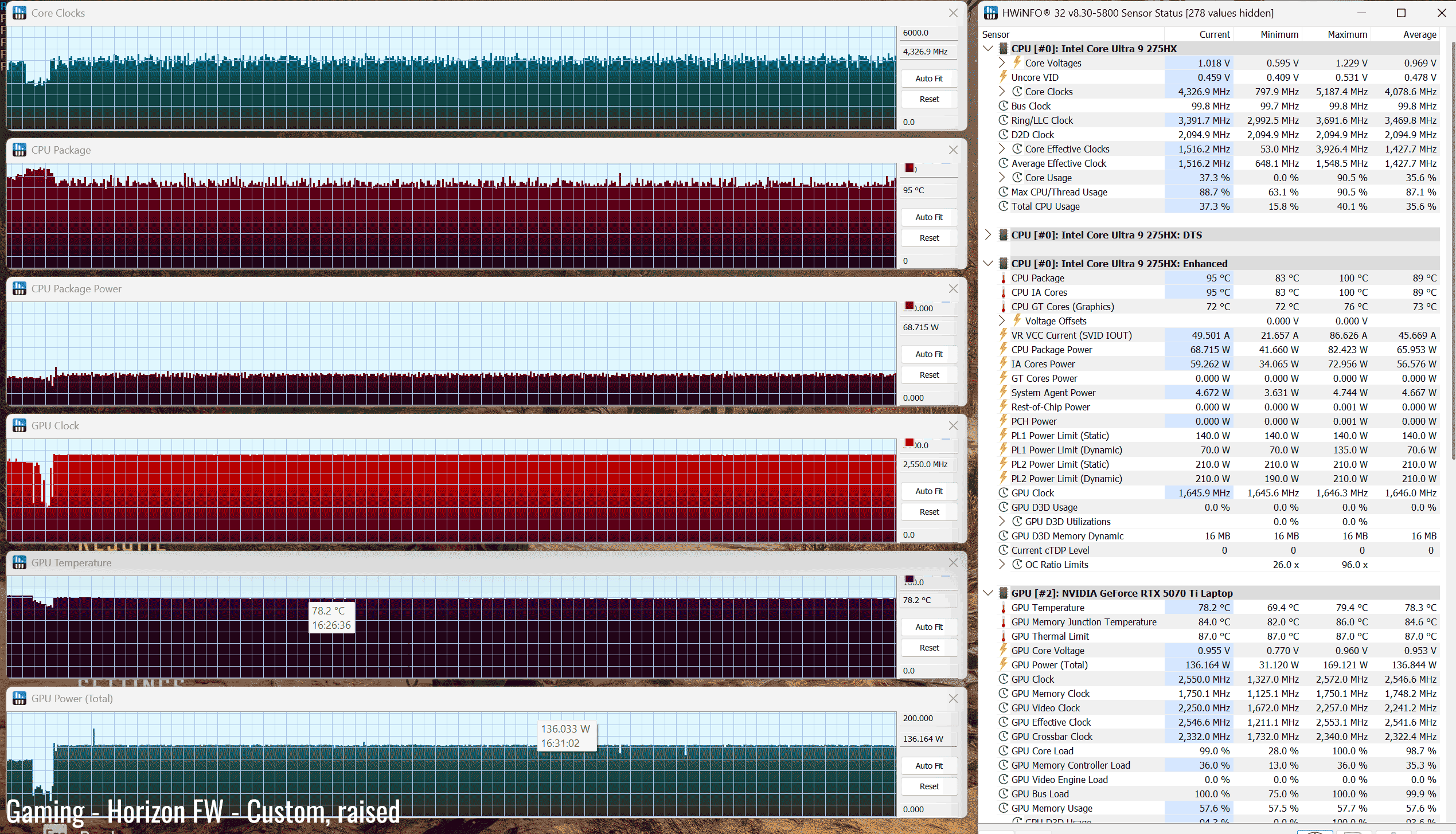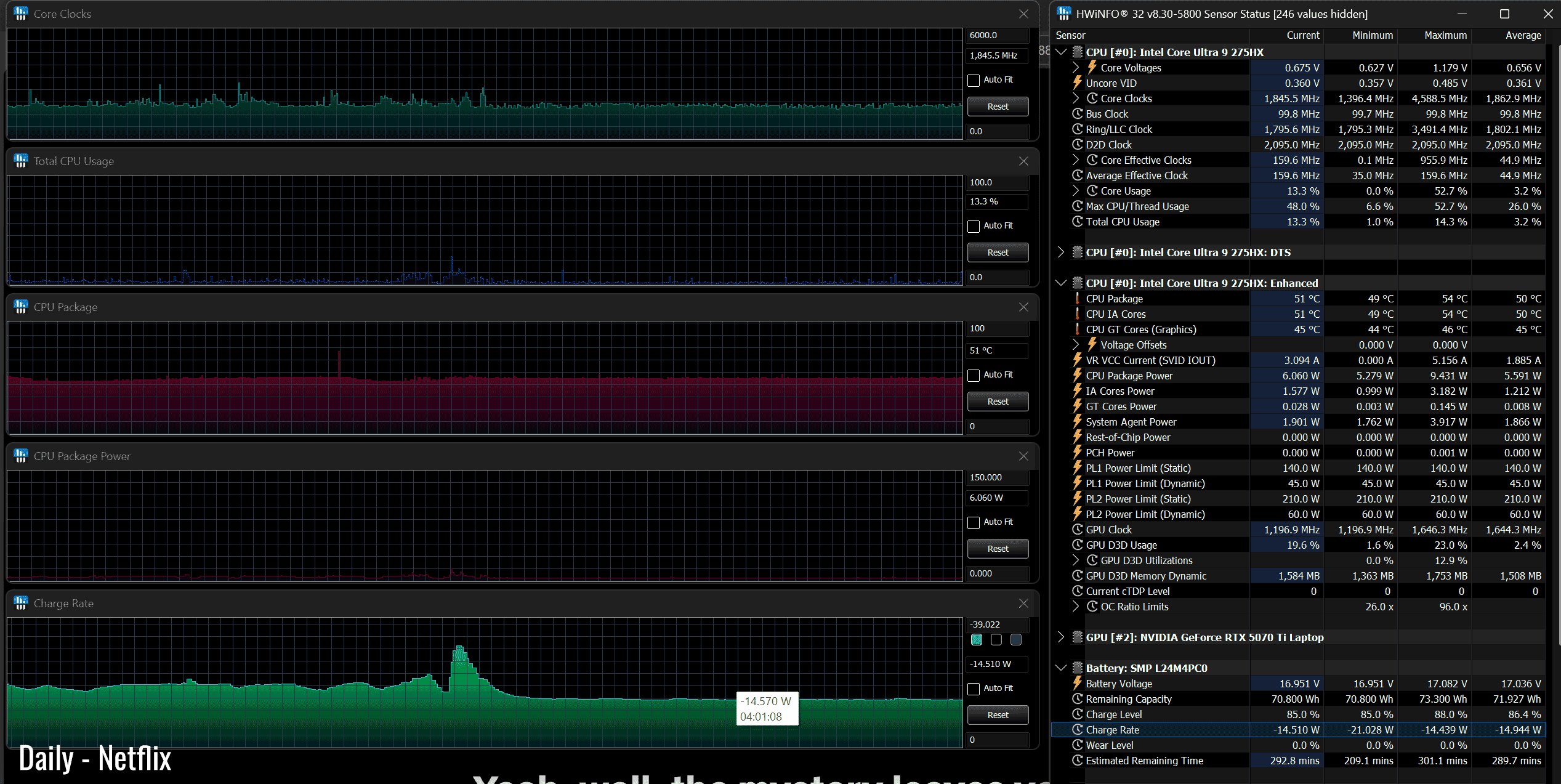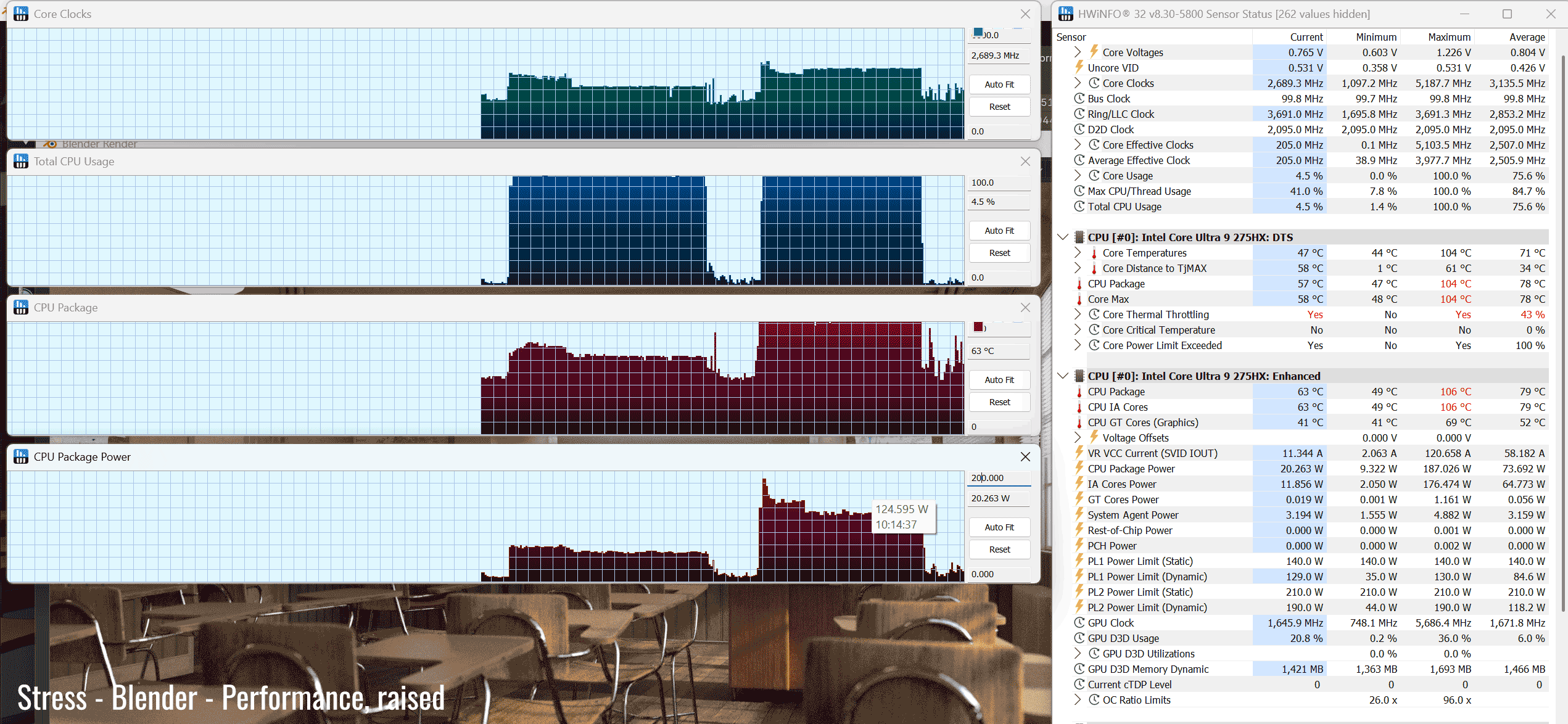 The Core Ultra 9 275HX is a high-performance mobile processor part of the Intel Arrow Lake HX lineup , with 24 Cores and 24 Threads. It’s a hybrid design with Performance and Efficiency Cores, and runs at around 120W of sustained power in demanding CPU loads – that’s not much compared to other full-size implementations of this same platform.