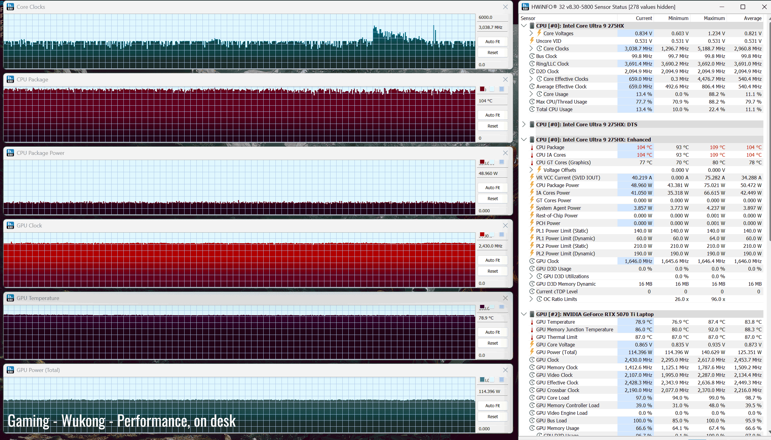 Here’s Performance mode, with the laptop flat on the desk.