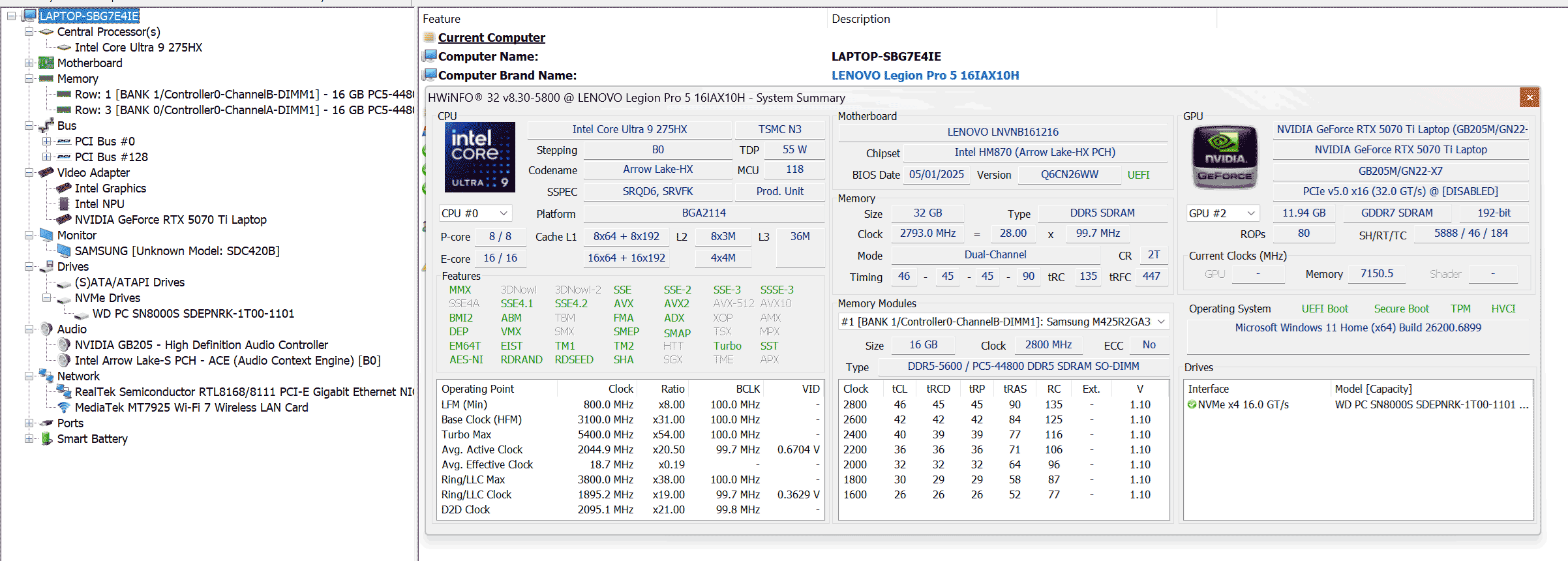 Our test model is a top-specced configuration of the 2025 Lenovo Legion Pro 5i gen10, code name 16IAX10H, with an Intel Core Ultra 9 275HX processor, an Nvidia GeForce RTX 5070Ti 12GB dGPU, 32 GB of DDR5-5600 memory, and 1 TB of fast SSD storage.