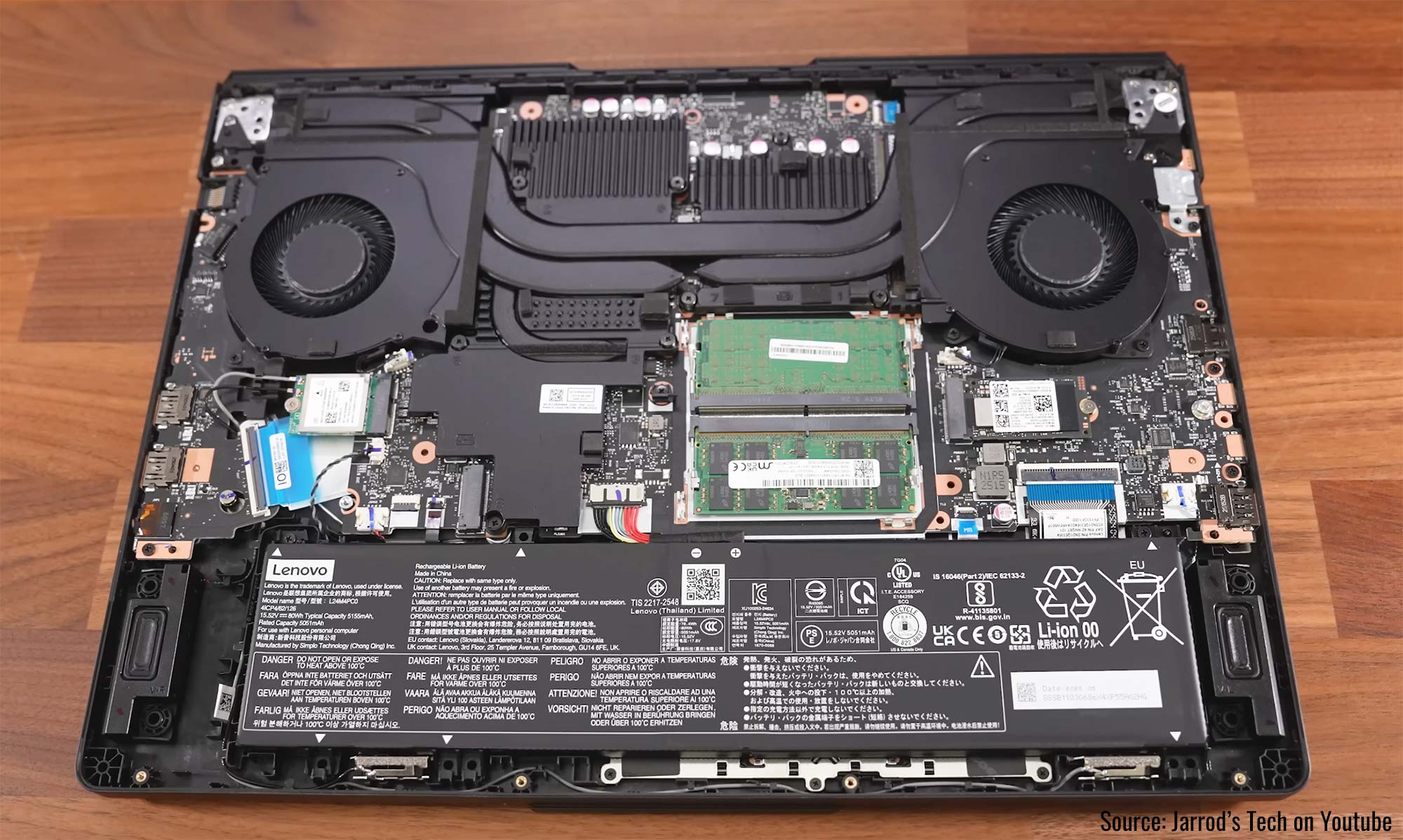 The cooling on this Legion Pro 5i is rather minimalist, but at least with high-capacity fans and thick heatpipes. Image Source .