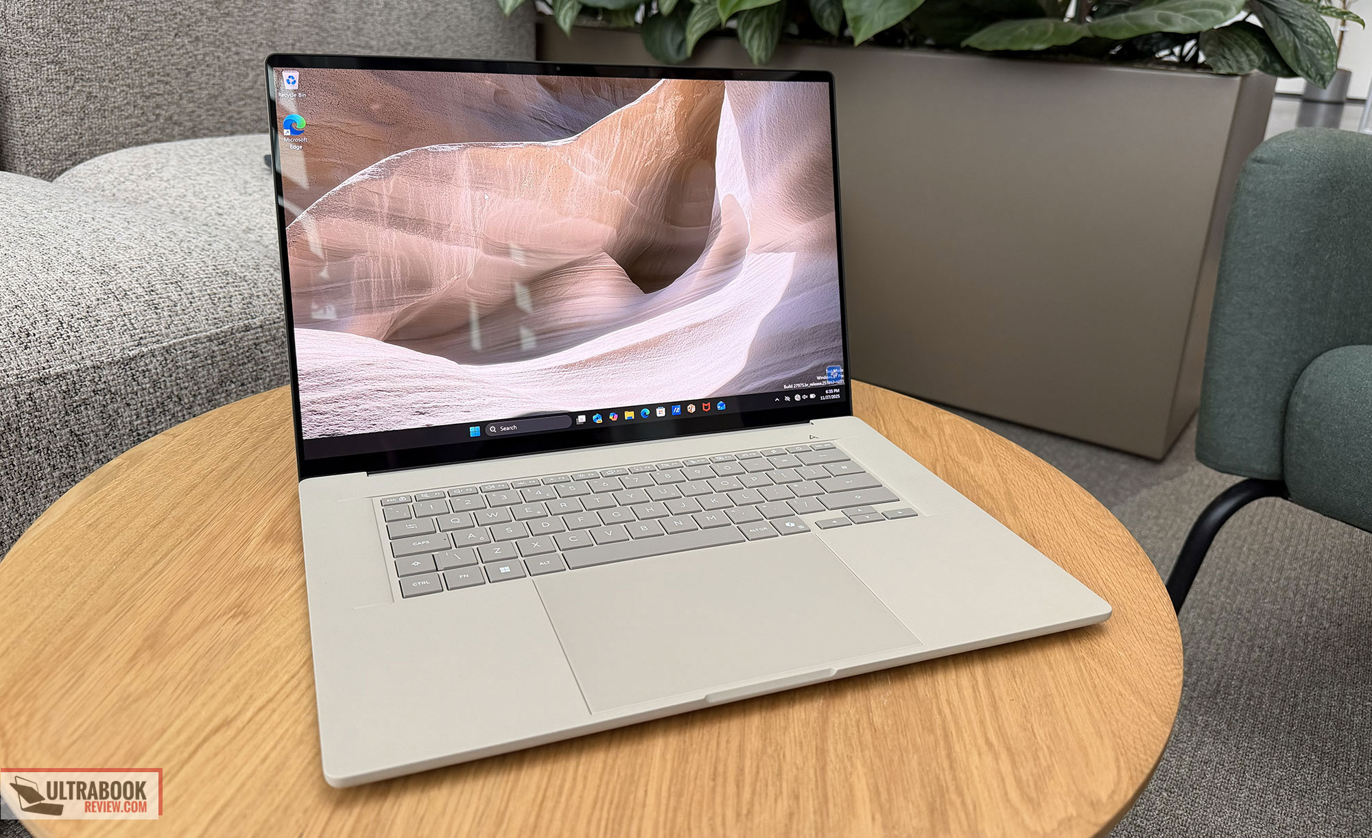 The display is where the Zenbook A16 differs from A14. While Asus still puts a 2K 60Hz OLED on the A14, the A16 is available with either a similar 2k 60Hz option on the lower-specced configurations, or with a Lumina Pro 3K 120Hz OLED on the upper-tier configuration. This is the new-generation OLED with brighter sustained and peak brightness implemented in the Zenbook DUO as well, but I’m not sure whether it supports VRR here on this Snapdragon platform.